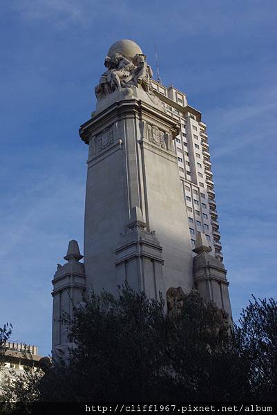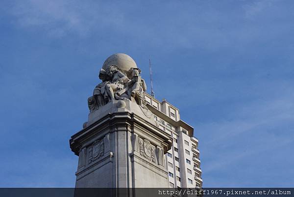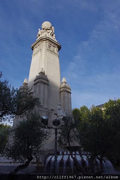 西班牙廣場(紀念碑上方的圓球是地球,下方有5個象徵五大洲的人像抬著)