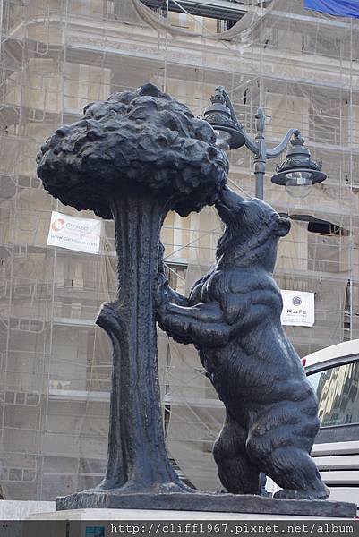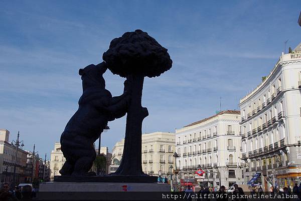 太陽門的廣場是交通的樞紐,同時也是商店與餐廳雲集的地方,廣場上還有一個熊採楊梅的銅雕,也是馬德里的市徽,也成了到此必訪的景點!